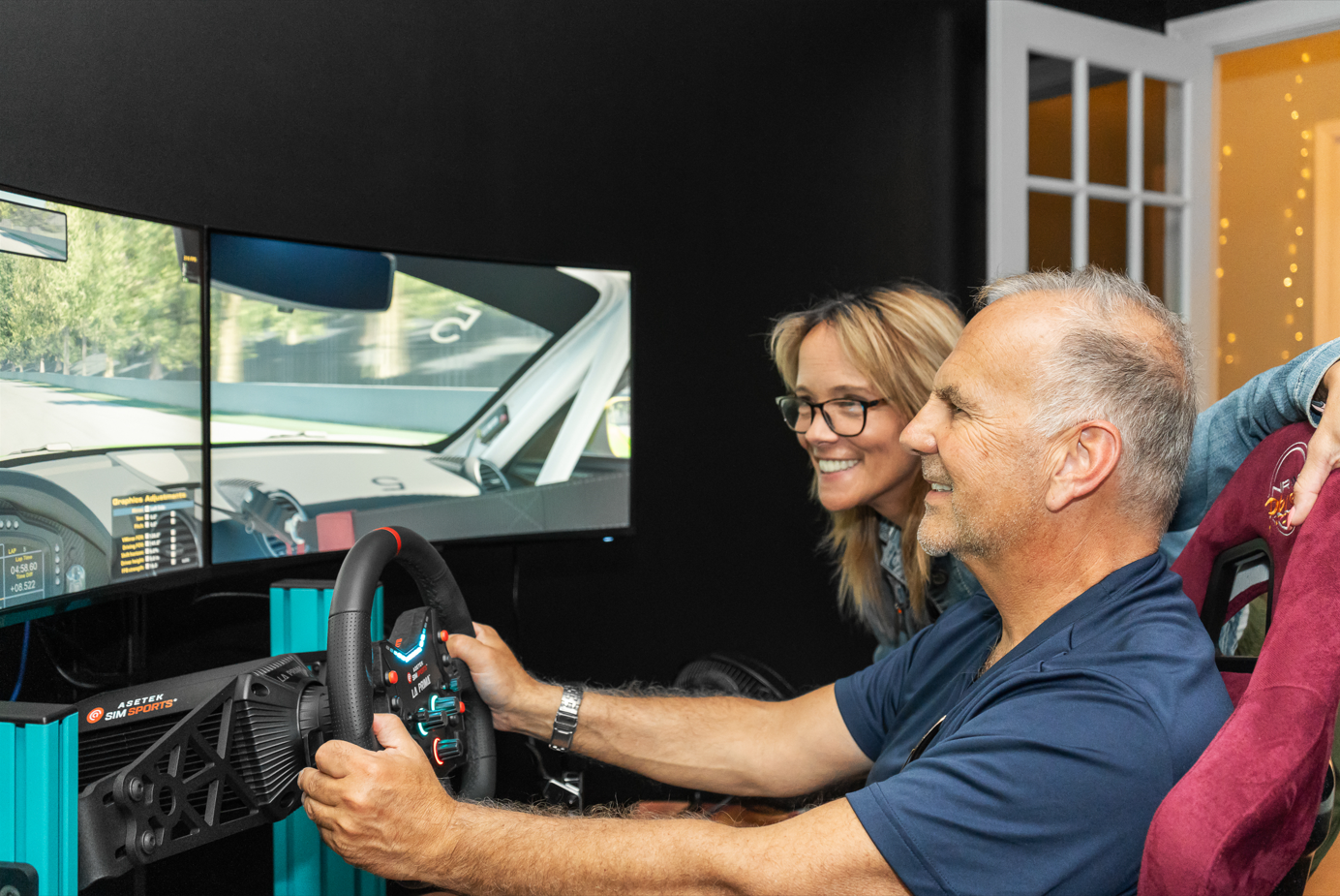 What to expect when booking your session with SIMSATIONS you will enjoy a realistic racing experience right in the comfort of our Professional Sim Racing Studio in downtown Lake Geneva, Wisconsin. Your experience will include racing in a professional grade, flex-free chassis complete with a hard shell bucket seat, and some of the BEST, most versatile driving gear the Sim Racing industry has to offer! You will also have the pleasure of sitting in front of triple monitors, for an extra level of immersion! This gives all drivers as much visual perspective as possible without being overwhelmed by VR, or worse -underwhelmed by a small single monitor experience.
